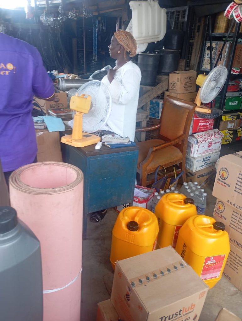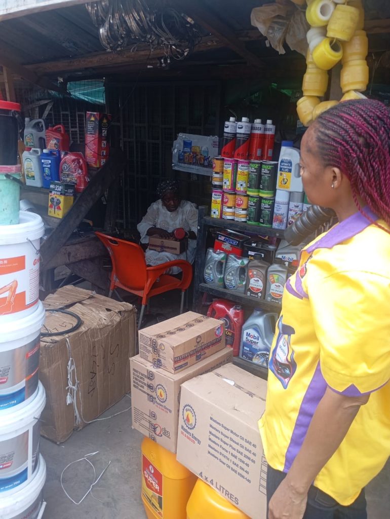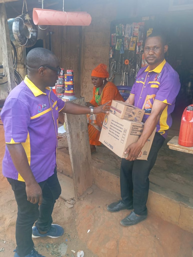 Delivery of MSD to Alahaja AROSCO, Lubricant shop Cara Trailer Park Sagamu